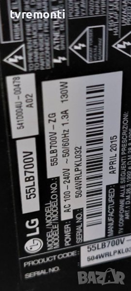 POWER BOARD,LGP55K-14LPB ,EAX65424001(2.7), for LG 55LB700V for 55 inc DISPLAY LC550DUH PG F1 Борда е гарантирано работещ Демонтиран от телевизор LG модел , 55LB700V със счупен дисплей LC550DUH PG F1 тествана от нашия техник