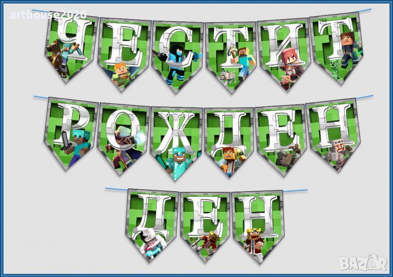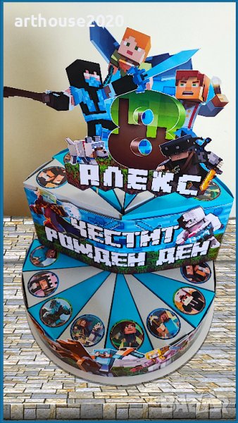 Картонена торта Майнкрафт + балон във всяко парче