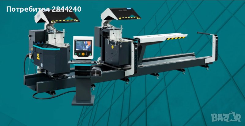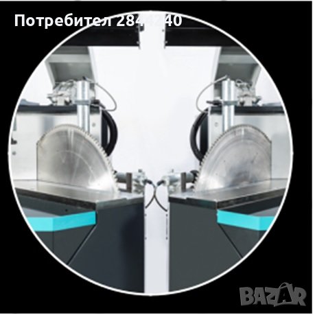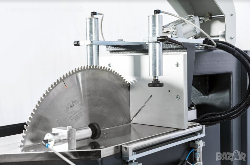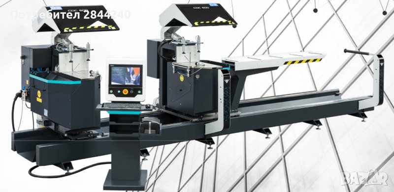 двуглава машина с 600 мм диск, предназначена за рязане на големи по размери PVC и алуминиеви профили. Профилите се режат по специален начин под определени ъгли без допълнително изчисление на размера за рязане по дължина.