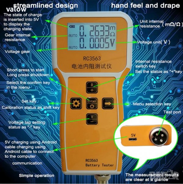 Прецизен измерител тестер на вътрешно съпротивление на батерии, акумулатори и кондензатори