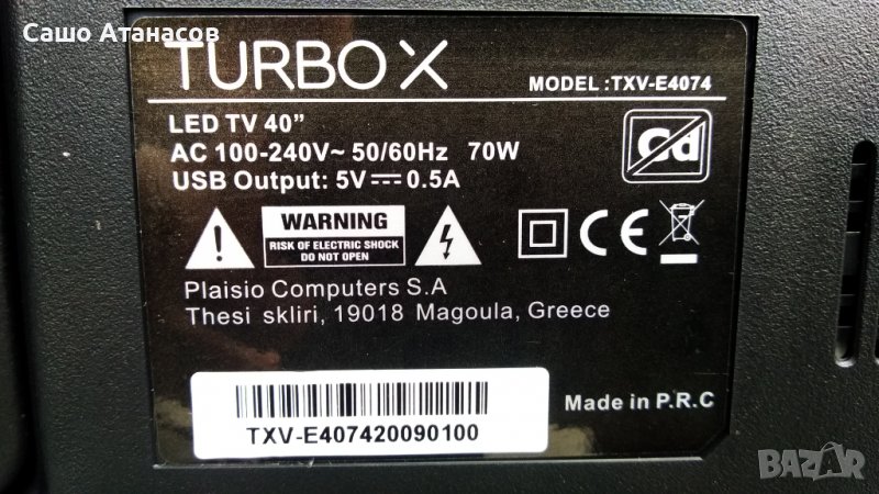 Модули от телевизор TURBOX TXV-E4074 със счупена матрица (панел CX400DLEDM / LE-40N4 / TZ2008-043 )