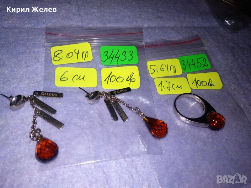 ВТОРАТА и ТРЕТАТА СНИМКА са ИЛЮСТРАТИВНИ - СНИМАН е КОМПЛЕКТА от РОДИРАНО СРЕБРО 925 ПРОБА ПРЪСТЕН и ОБЕЦИ ГАЛДИНИ - МОЖЕ да НАМЕРИТЕ ОБЯВАТА с ПРЪСТЕНА в ПРОФИЛА ми ЧРЕЗ ТЪРСАЧКАТА като НАПИШЕТЕ ПЕТЦИФРЕНИЯ НОМЕР от ЕТИКЕТЧЕТО! МОЖЕ да се ЗАКУПЯТ КАКТО ПООТДЕЛНО, ТАКА и ЗАЕДНО по НАПИСАНИТЕ в СЪОТВЕТНИТЕ им ЕТИКЕТЧЕТА ЦЕНИ!!! Пускам голяма СЕРИЯ от най-разнообразни СРЕБЪРНИ БИЖУТА - украшения, кръстчета, медальони, пръстени, обеци, колиета, брошки, гривни, гердани и други най-различни; повечето са от СРЕБРО , има и някои посребрени, позлатени, бронзови, медни, неръждаема стомана, САЧАН , и други подобни ювелирни материали и изделия. Някои са подходящи и за хенд-мейд материал. Почти всички са в ОТЛИЧНО състояние - СНИМКИТЕ ги ОНАГЛЕДЯВАТ!!! Много от тях са инкрустирани със скъпоценни или полускъпоценни камъни. Повечето са нови, има и старинни, ретро, арт, ръчна изработка, ВЪЗРОЖДЕНСКИ накити; както и МНОГО други интересни неща - имам НАД 25000 обяви в профила си - За ВСЕКИ по НЕЩО...!.Изпращам по Еконт или Спиди винаги с Опция Преглед и Тест и Отстъпка-транспорт.