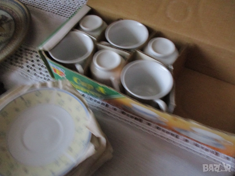 Чаши жълто и синъо . 12 части -6 бр чаши и 6 бр чинии - 15 лв