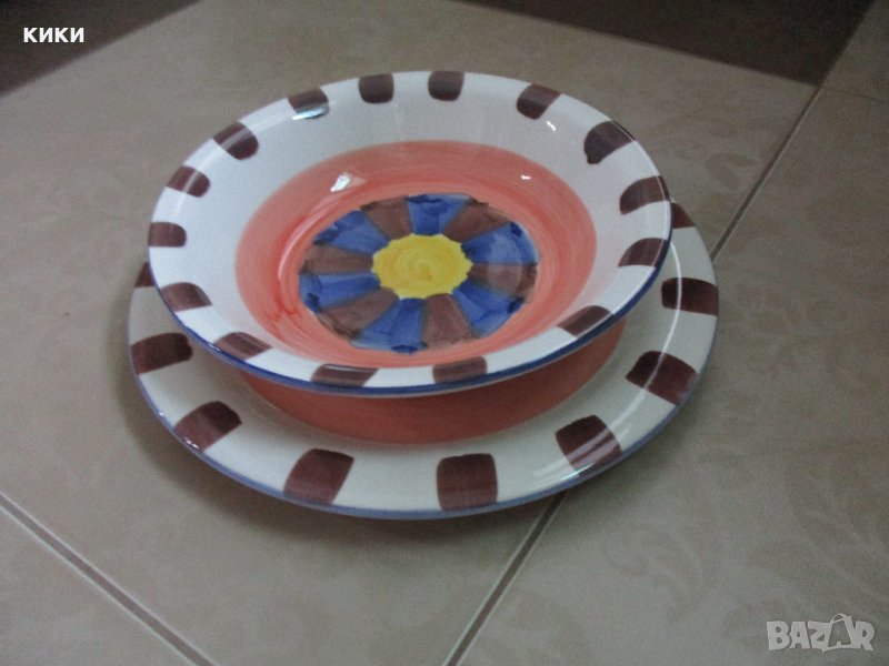 Чиния и купа ръчно рисувани керамика - 20 лв