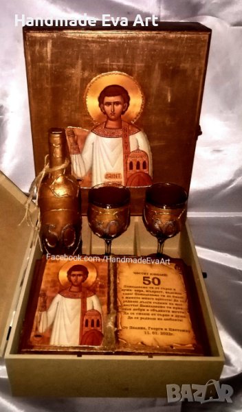 Подарък за Юбилей- ръчно изработени по поръчка - с икона + снимка + поздрав по избор: