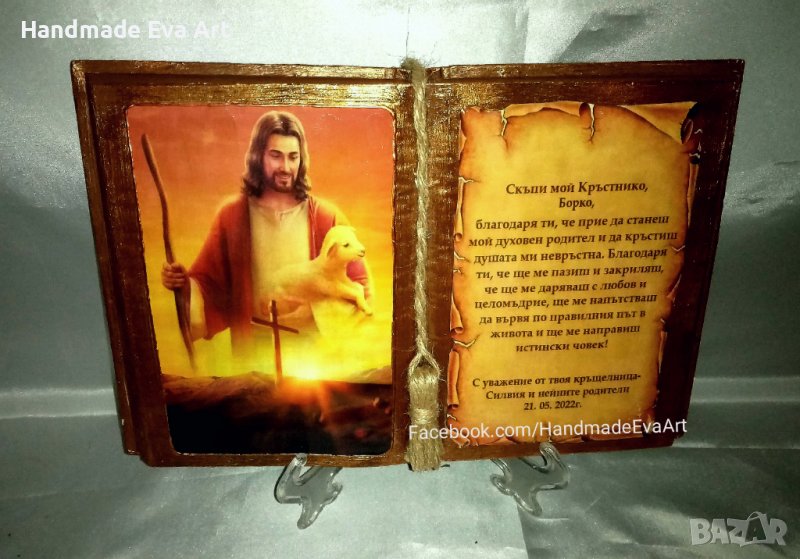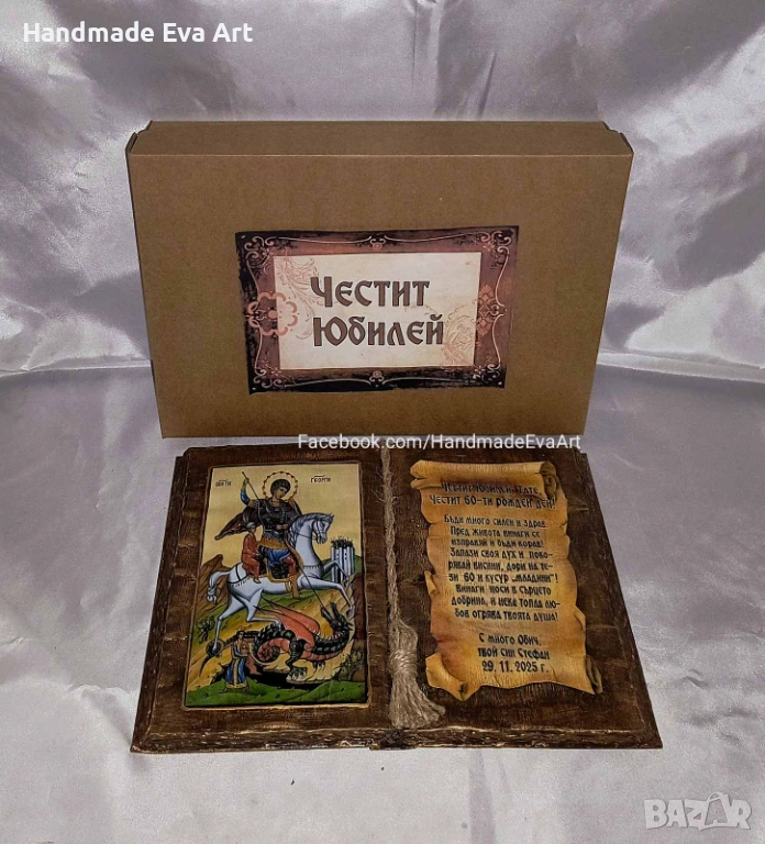 Подарък за 50, 60, 70, 80-ти Юбилей-Състарена книга с икона(снимка)+поздрав по избор → Обява 39572115