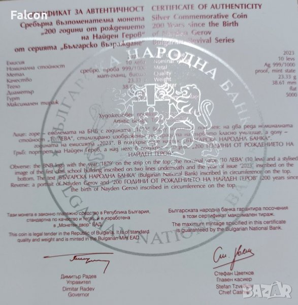 10 лева, 2023 г. - Българско възраждане - 200 години от рождението на Найден Геров → Обява 39574883