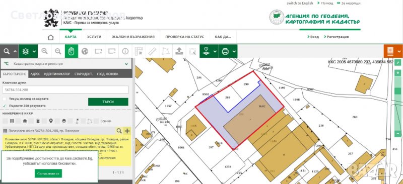 Сградата 56784.504.288.1 се състои от три метални халета за търговско-складова, изложбена и производствена дейност. Широчината на всяко хале е 18м. Дължината е 108м. Височината до борда на покрива е 11,20м. и максималната височина е 14,20м. Застроената площ е 6034кв.м. В предната част на 2-рия етаж има административна част. Общо разгърната застроена площ е 6564кв.м. За грубия строеж на сградата е съставен Акт.обр.14 за приемане на нейната конструкция. Попълнена е в кадастралната карта на гр.Пловдив. За обслужване на халетата са построени: около 2000кв.м. асфалтови пътища, 420м. площадкова електро-кабелна мрежа с