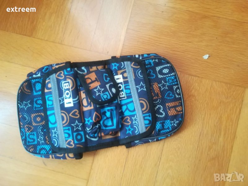 BOI - чантичка за велосипед, много удна с две прегради те два странични джоба ляв и десен, вътре с ррегратки за малки неща или монети, и джоб за мобилен телефон, слага се над рамката и се задържа с няколко ремака отзад който не се забелязват.
