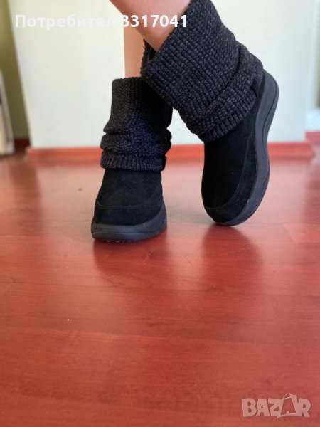 Боти от кожа(набук)/текстил, черни, не са носени, номер 36, дебела подметка