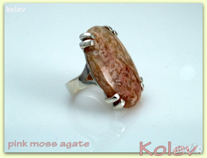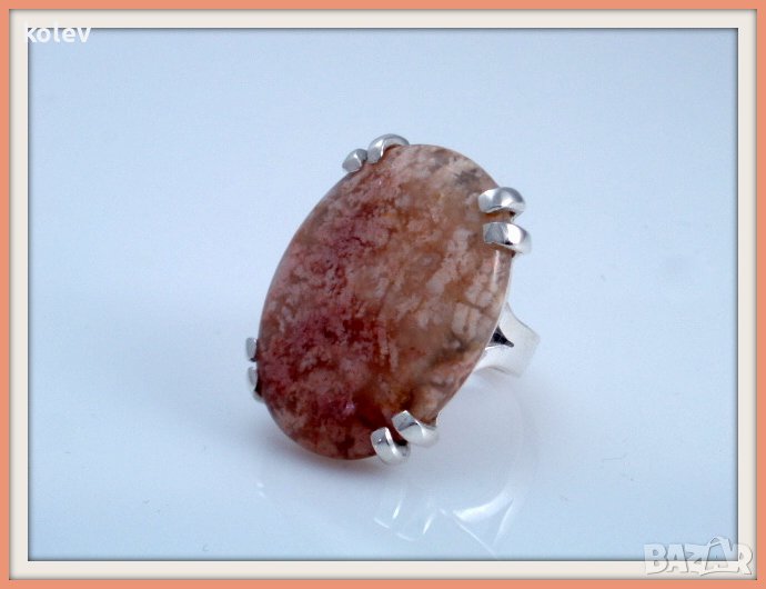 Сребърен пръстен с РОЗОВ МЪХОВ АХАТ размер №54