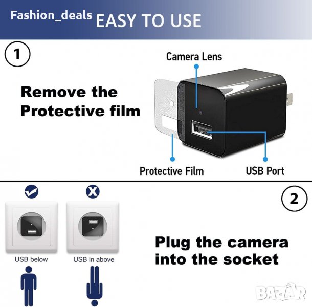 Нова Шпионска мини скрита камера Зарядно за контакт за сигурност / наблюдение → Обява 39577898