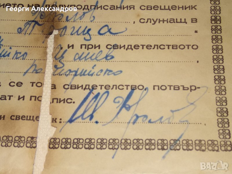 СВИДЕТЕЛСТВО за ВЕНЧАНИЕ БРАК - БЪЛГАРСКА ЕКЗАРХИЯ 1946 г. ЦАРСТВО БЪЛГАРИЯ Стар ДОКУМЕНТ → Обява 39579055