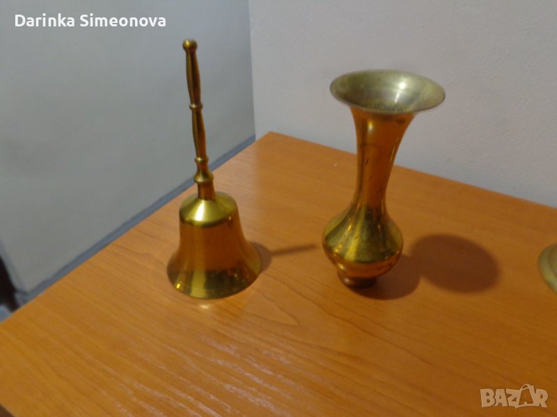 свещник 1 брой 22см-30лв.; чапла- 20лв и вазичка по 10лв; 2 малки звънчета -чанчета по 4лв