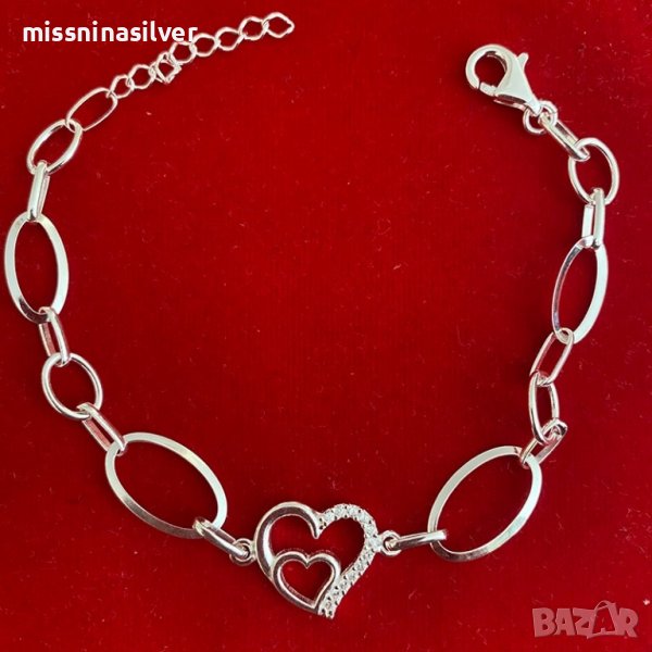 Сребърна гривна със сърце, снимка 1 - Гривни - 39583098 Сребърна гривна със сърце, снимка 2 - Гривни - 39583098 Сребърна гривна със сърце, снимка 3 - Гривни - 39583098 1/3