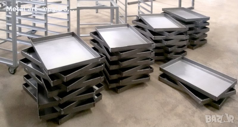 Класически баничарски тави със стандартни размери 60/40 см и дълбочина 3 см. Подходящи са за различни видове закуски – банички, милинки, кифли, пици и др. Изработени са от черна ламарина с дебелина 0,6 мм, с двойно подгънати ръбове и заварени ъгли.