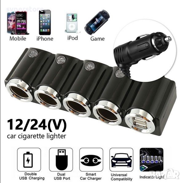 Разклонител 12V 24V за кола 4 изхода + 2USB Digital One SP00647 -1504 -120W