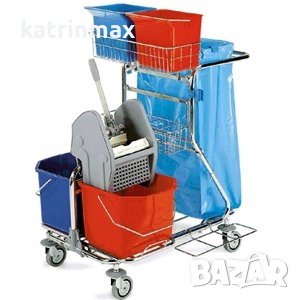 с две ведра стелажи и преса , камериерска количка с едно ведро