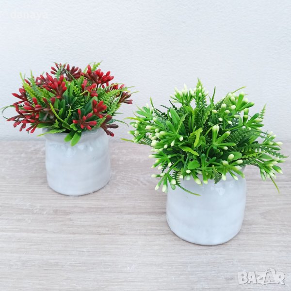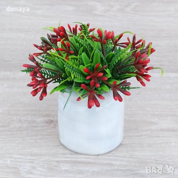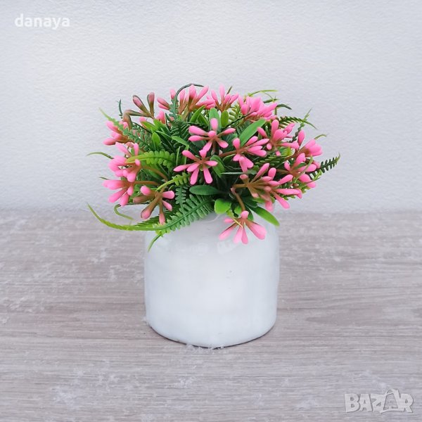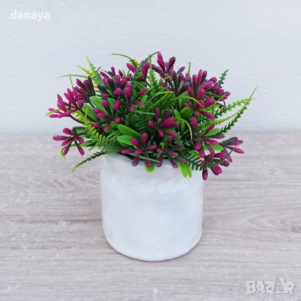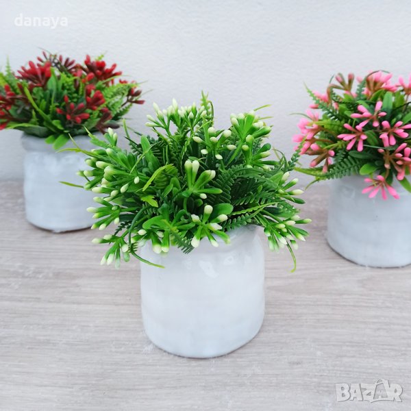 Мини изкуствено цвете в керамична саксия. Красиви изкуствени цветя в керамична кашпа. Чудесна декорация за дом или офис. Предлагат се в различни цветове на цветчетата.