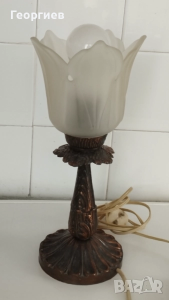 3.Стара нощна лампа от Соца на бронзова основа висока от основата до върха на крушката 38 см.Изправна и свети.-€35