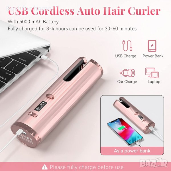 【USB зареждане и лесно пренасяне】-- Машата за коса има вградена литиева батерия от 5000 mAh, отнема 3-4 часа за пълно зареждане и може да работи 60 минути; Предлага се с USB кабел, може да се зарежда по всяко време и навсякъде. Той е малък, лек и лесен за носене, така че можете да ги пъхнете в чантата си и да навиете косата си по всяко време и навсякъде.