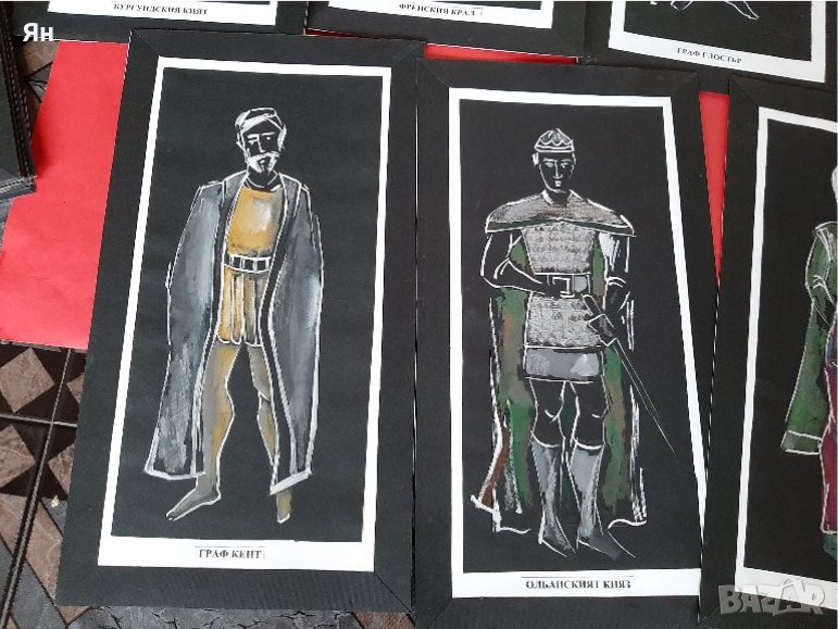8 постера направени с Черна и Бяла твърда хартия,рисувани с Молив,Пастел и Акварел