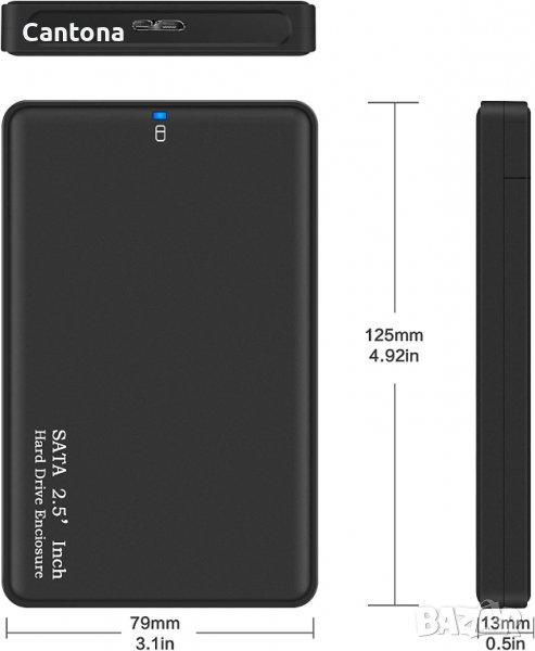- Кутията работи с кабел тип USB 3.0 - кабелът е включен в комплекта