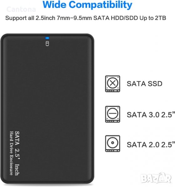- Подходящ за 2.5" SATA III / II / I HDD (твърд диск) и SSD (Solid State устройство) до 6TB, съвместим с WD Blue SATA PC HDD 2.5, WD GREEN 2.5 SATA SSD , Seagate Barracuda 2.5, Seagate FireCuda, Samsung 860 EVO/850 EVO SATA III SSD, SSD PLUS, Crucial BX500/MX500, Kingston A400 SATA SSD, TOSHIBA TR200, PNY CS900, DREVO X1, Integral, HITACHI
