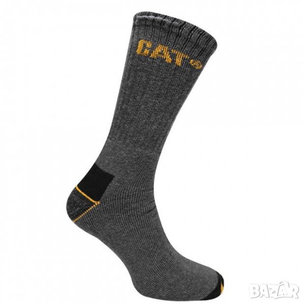 CAT Work Socks 3 Pack Mens The CAT Work Socks 3 Pack offer a comfortable fit for the workplace, with a thick cotton rich design, supportive heel section and footbed. These Caterpillar socks have a ribbed ankle opening for an easy to pull on action, and are complete with a stitched CAT signature. > Mens socks > Pack of 3 pairs > Ribbed ankle opening > Supportive heel and footbed > CAT logo > Machine washable