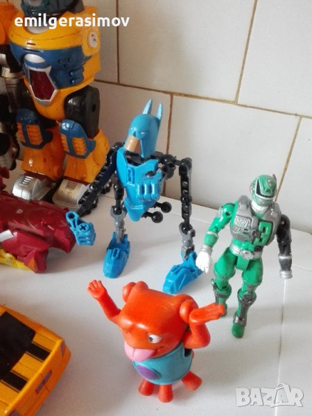 1. Лот от 12 броя пластмасови играчки - герои от филми. Здрави са , само на големия робот липсва едната ръка. Цена 13 евро
