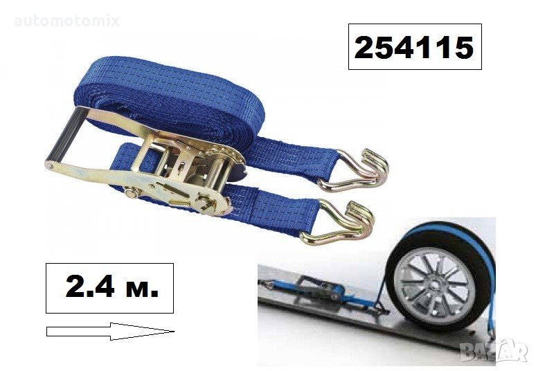 3-точков колан за укрепване при транспортиране в съответствие с всички международни изисквания за осигуряване на коли и леки превозни средства върху платформа. Това е професионален модел, който ще защити превозваните автомобили от повреждане, независимо дали се транспортират сухопътно, по въздух или вода. Предимството на широколентовите колани за укрепване на товари с тресчотка е свойството им да не позволяват на автомобила да се наклони или подхлъзне.