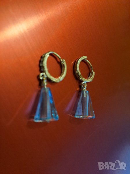 Обеци висящи със съни камъни, еа на халката закопчалка с бели камъчета. Отговарям на съобщения тук, изпращам с куриер с отстъпка, преглед и тест, или лично предаване в София.