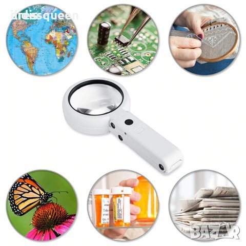 Сгъваема настолна и ръчна лупа с LEDосветление и литиевойонна батерия 5х, 11х → Обява 39603354
