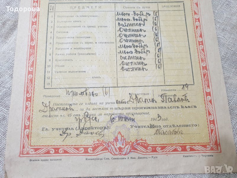 Старо царско свидетелство -1942/43 година → Обява 39606191