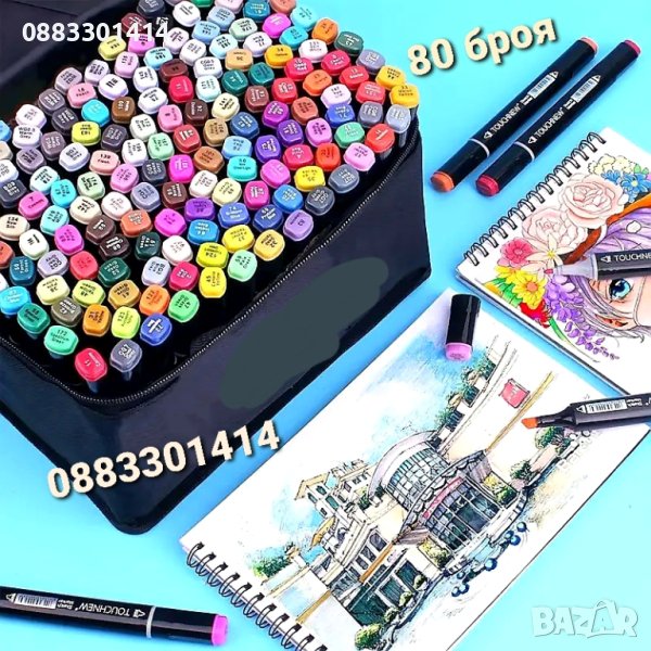 Цветни маркери, предназначени за писане или рисуване. Двустранни, с тънък и широк писец за скици за скициране, рисуване, маркиране, оцветяване за възрастни, POP реклама, калиграфия и за илюстрации.