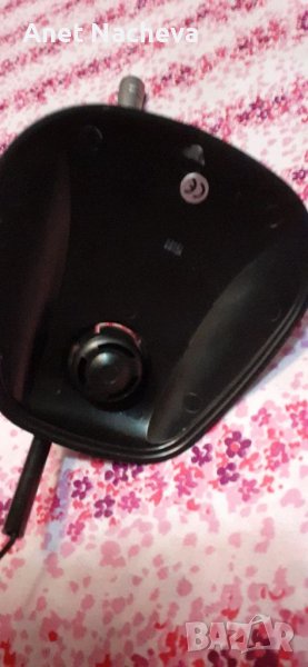 С много дълъг кабел, черен на цвят със стойка, на която се завърта микрофона