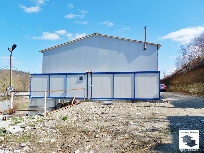 Помещението е с площ 290 кв.м. и включва- просторно помещение с канал за камиони, телфер, складово помещение, санитарен възел. Разполага с ток, вода, две големи двойни врати. Имотът е ограден от всички страни. В продажната цена е включено допълнително офис- 62 кв. м; малка къща- 61 кв. м; помощно помещение- 30 кв. м. Отоплението на помещенията се осъществява с локално отопление с водна риза. Имотът е в отлично състояние, разположен на добро място. Изграден е с термо-панели.