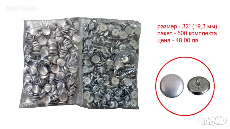 Заготовката за обличане на копчета е с метална или пластмасова основа.