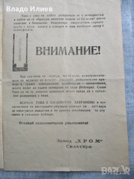 Бойлер самовар за баня ,производство на завод "Хром" Силистра-неговата техническа документация → Обява 39611945