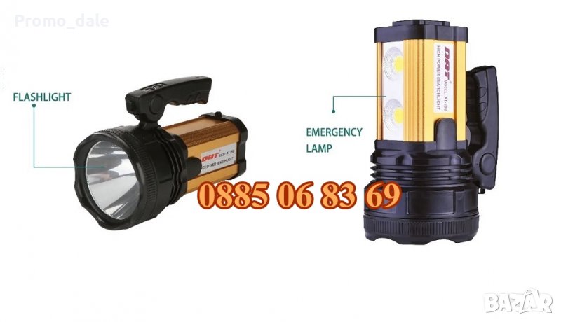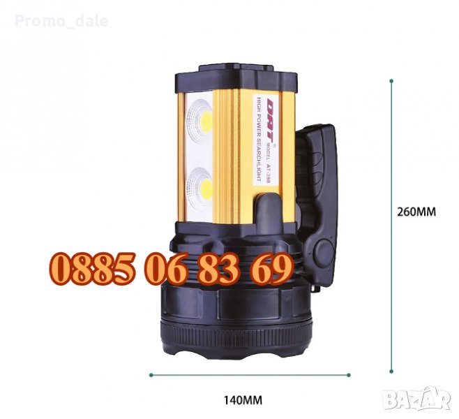 Акумулаторен МОЩЕН LED прожектор DAT AT-398, водоустойчив, LED фенер