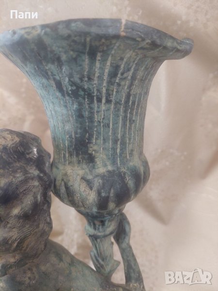 Изключително красива скулптура от Южна Италия,от началото на 19-ти век. Романското изкуство варира от началото на 19-ти век с цел да възроди античното римско изкуство. Скулптурата е много стара и взаимствана от римската епоха.Разполагам с документи за произход. Размери В/45 см. Ш/16 см. Тежи 3.500 кг.