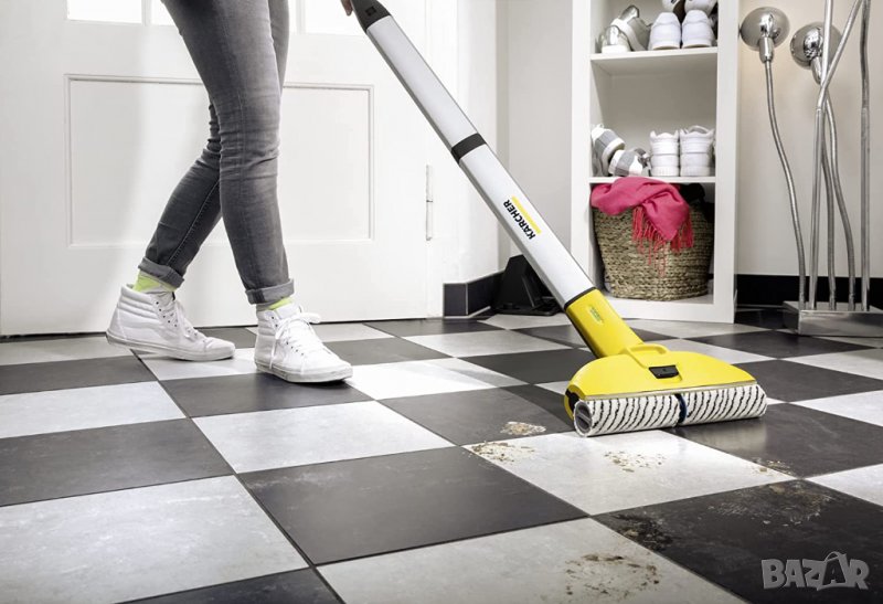 Лесно отстранете наскоро разлятите или втвърдени течности до последното петно без кофа и нужда от интензивно почистване? Уреда за почистване на твърди подови настилки Karcher FC 3 с два резервоара прави това възможно - сбогувайте се с конвенционалния моп. Въртящите се ролки са постоянно навлажнени с прясна вода, докато събраната мръсотия достига до резервоара за отпадъчни води. Устройството оставя подовете до 20% по-чисти от конвенционалните мопове. Поради тънката си форма и гъвкавата въртяща се връзка, FC 3 Cordless не само лесно достига до мебелите, но и спестява място за съхранение. Времето за сушене на пода е около две минути, което го прави напълно подходящ за използване на всички видове твърди подове (напр. Плочки, паркет, ламинат, PVC и винил). Мощната литиево-йонна батерия позволява време на работа от около. 20 минути, което е достатъчно за почистване на площ от около 60 m².
