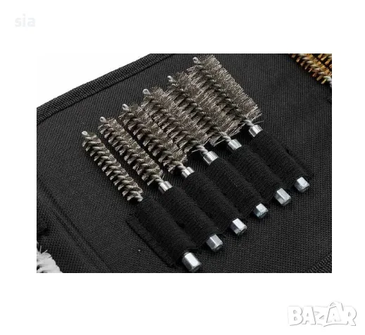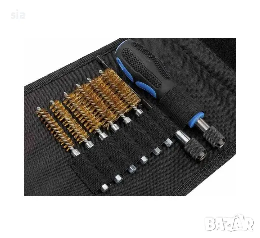 Професионален комплект четки за почистване на инжекторни гнезда, гнездата и полюсите на запалителни и подгревни свещи. Комплектът включва 20 елемента, включително четки с различни размери и материали. Комплектът включва удължител и дръжка за отвертка. Всичко е опаковано в удобен и практичен калъф.