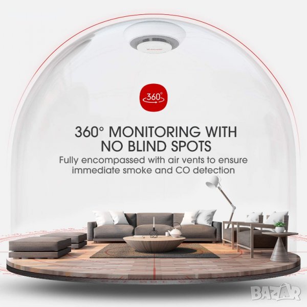 Точна, надеждна и силно чувствителна: Комбинираната аларма за дим и CO X-Sense е преработена отвътре навън; ще гарантира, че димът или CO активират алармата вместо смущения, като вземат 3 отделни проби от дим или CO от околния въздух; пълен 360° пръстен от входове за въздух осигурява пълно откриване без слепи петна
