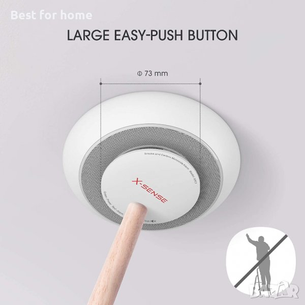 X-Sense 10-годишен алармен детектор за дим и въглероден окис с голям бутон за заглушаване, XP01