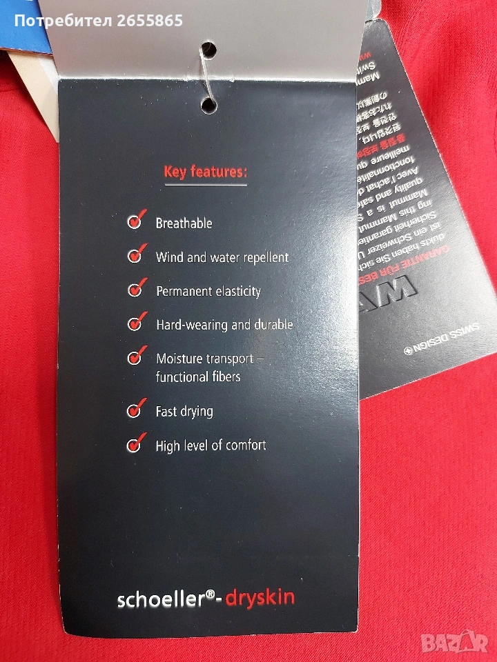 Материя: Използва се технологията Schoeller-dryskin, която е дишаща, еластична и устойчива на износване.
