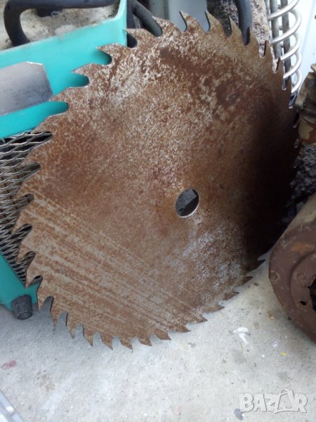 Нов купуван от баща ми много отдавна,стария материал,35 см диаметър,големи зъби, има тъмно петно заченки на ръжда,но не е по зъбите и не е много, въпреки, че е омазан с грес,явно е бил опрян на ръждив винкел.Малко е и бързо ще се изчисти на първия срез.