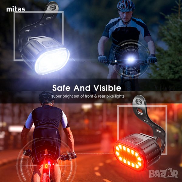 Комплект акумулаторни, водоустойчиви LED светлини за велосипед USB-078