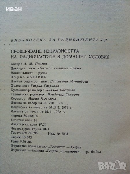 Проверяване изправността на радиочастите в домашни условия - А.Почепа - 1971г. → Обява 39623339