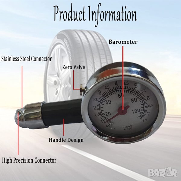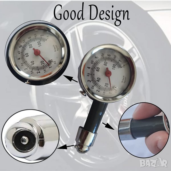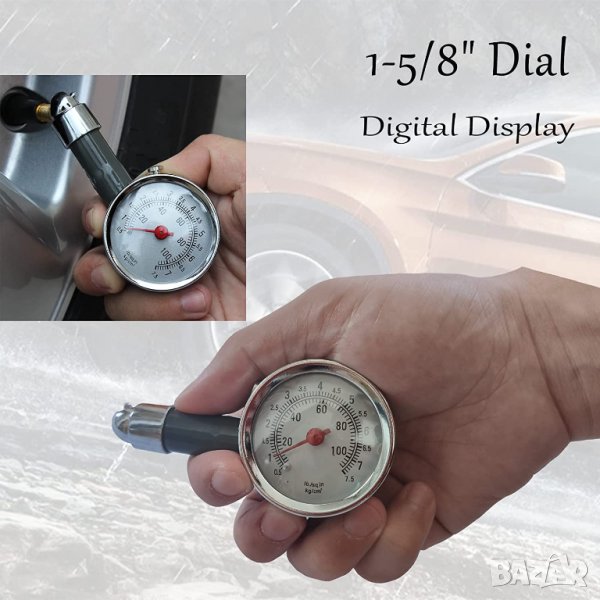 Манометър за налягане на гуми, Тестер за проверка на налягането гумите, кола, автомобил, атмосфери